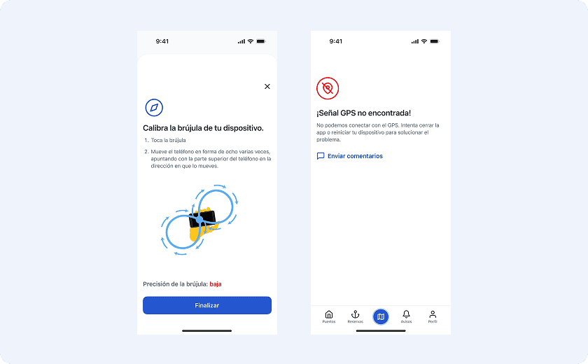 Te ayudamos a resolver problemas con la conexión que puedas tener, activar tu GPS o calibrar la brújula de tu dispositivo fácilmente.