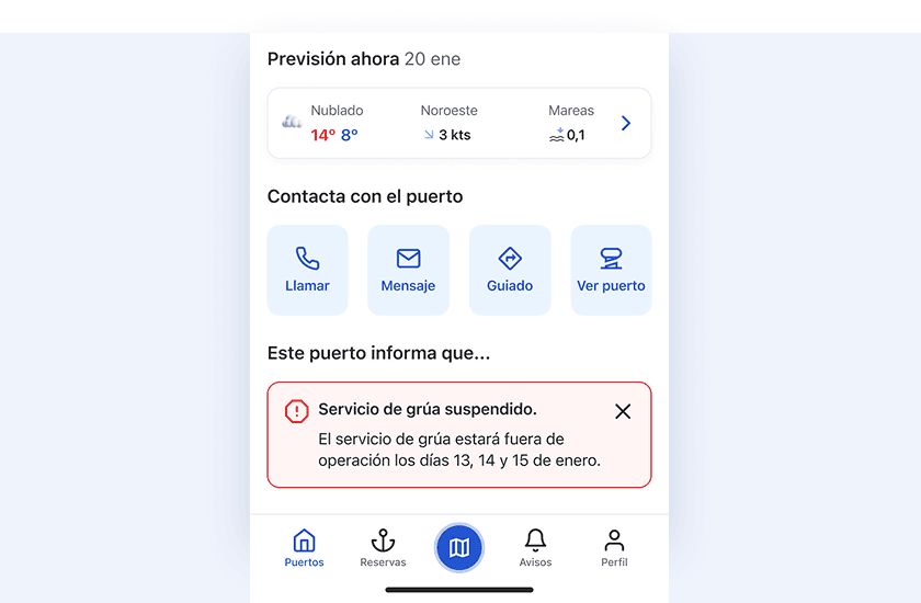 Informar incidencias del puerto
